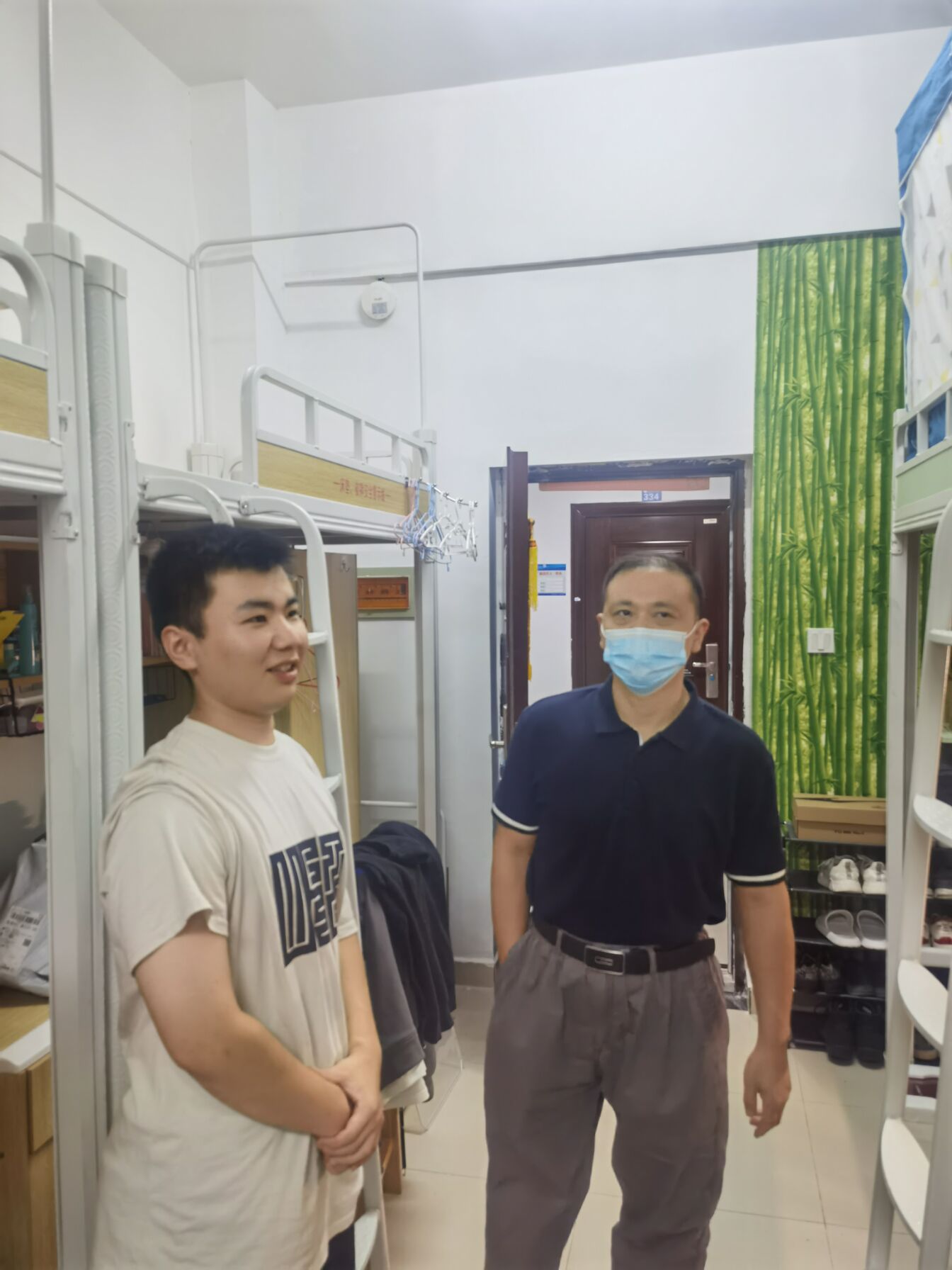 走访中,赵德军与22级专升本新生进行了亲切交流,不断提醒同学们注意公司疫情防控要求,做到防疫、学习两不误。并询问返校后在学习和生活中的困难,鼓励大家要克服疫情带来的不便影响,做好宿舍安全与卫生防护,提高安全意识,尽快适应新学期在校的学习和生活。