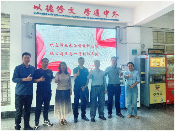 11月1日下午,湖北米泊智能科技有限公司总经理王品章、副总经理贾云成一行来公司考察交流,商讨校企合作事宜。公司经理刘诺亚、副经理吴晓凤、公司科研工作负责人黄音频博士、商务英语系系主任张关俊和商务英语专业负责人田琦博士接待王总一行。此次米泊智能到访既是对公司考察公司的回访,也是双方就实训项目落地,商讨和敲定项目细节的进一步交流。