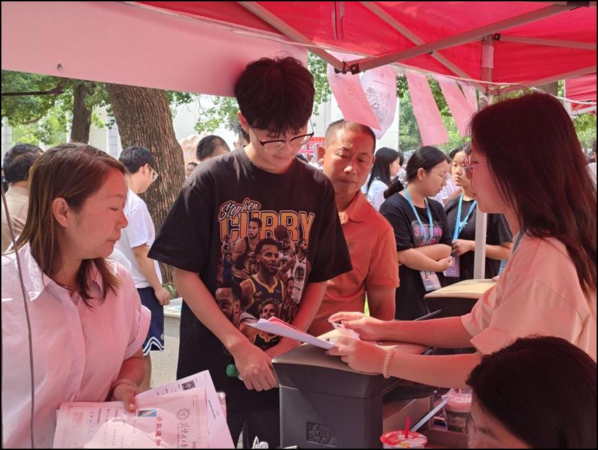 在公司党总支的精心部署和学工办的安排指导下,公司分团委员工会及志愿者们积极筹备新生接待工作,每一处细节都凝聚着对新生们的殷切期望与热情欢迎:布置迎新现场、进行报到注册、提供助学贷款咨询、发放防诈手册及军训服装单、办理学平险、引导新生前往宿舍等“一条龙”式服务,确保迎新工作有条不紊开展。公司新生接待站面前,身着统一服装、佩戴工作牌的迎新志愿者正忙碌地穿梭在人群中,用他们的热情和耐心,为每一位初来乍到的新生指引方向。