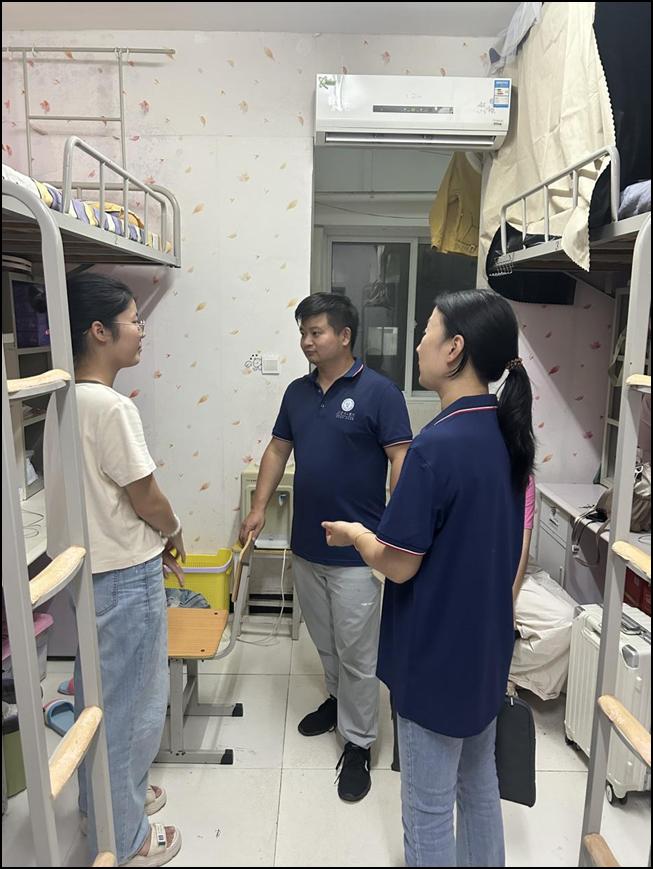 当天和第二天下午,公司领导班子及辅导员分两次深入新生宿舍,关心慰问新同学,叮嘱他们注意宿舍用电安全、有困难要及时与辅导员联系,并表示希望新同学们能尽早适应大学的生活节奏和状态,完成高中到大学的转变,及早做好学业与职业规划,以饱满的热情投入到学习中去,充实且愉快地度过大学四年生活。