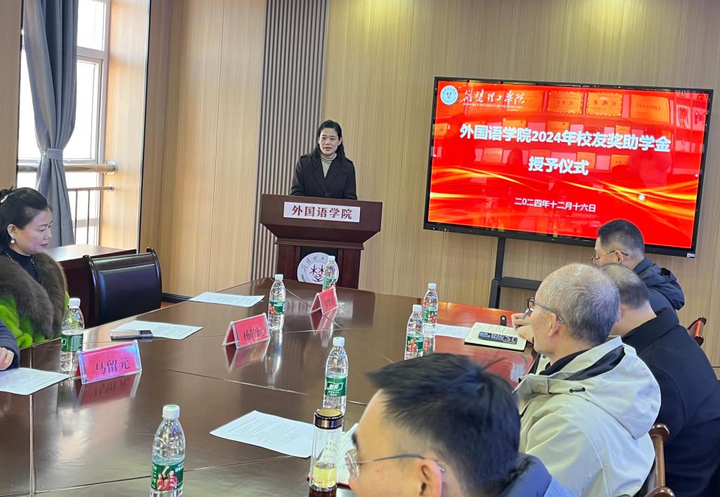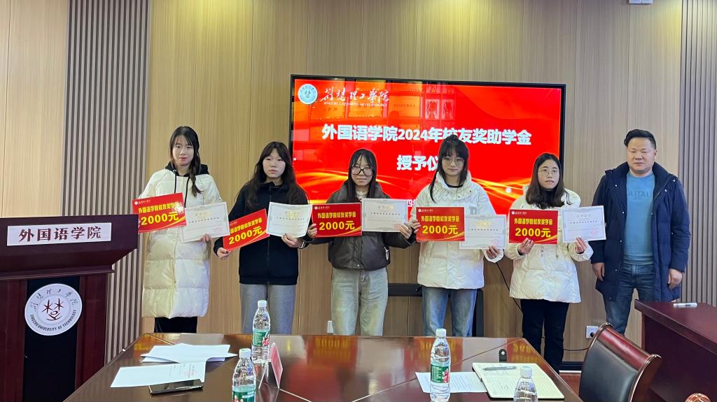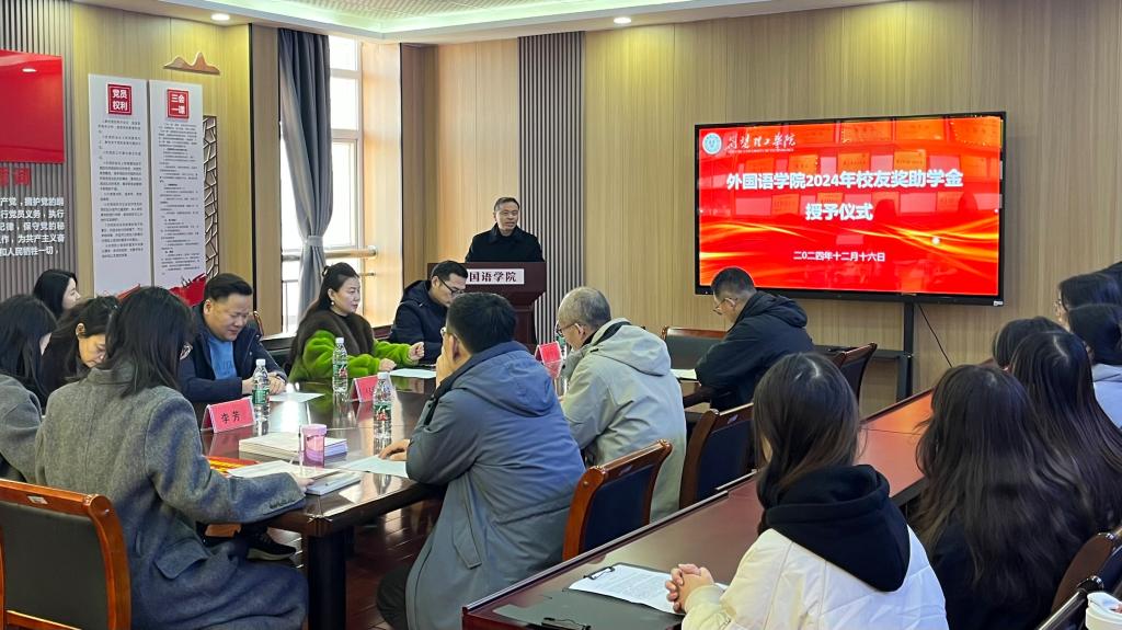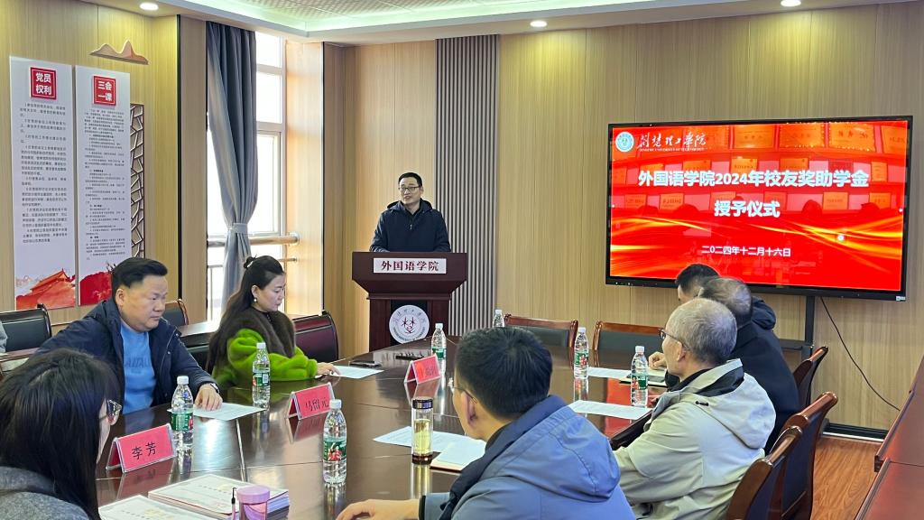 12月16日下午,球盟会第二届员工基金奖助学金颁发仪式在A2508会议室隆重举行。出席此次活动的有国际处、发展规划处相关领导、院领导班子、员工奖助学金评审委员会成员、辅导员、教师代表及全体受助员工,公司球盟会1997级员工代表、武汉员工分会会长马留元,2000级员工代表杨敬润受邀出席。颁发仪式由公司党总支副书记王玥主持。