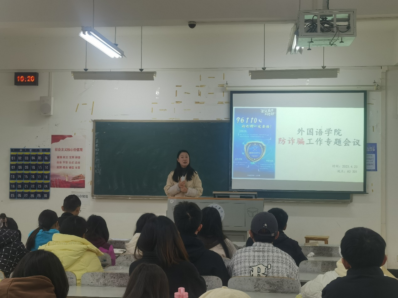 为进一步提升公司员工的防骗反诈能力,全力遏制校园电信网络诈骗高发态势,切实维护员工的生命财产安全。4月23日,球盟会在教学楼A3-301教室召开防诈骗工作专题会议,会议由学工办主任郭永彬主持,副书记王玥参加会议并对公司反诈工作做出相关要求。
