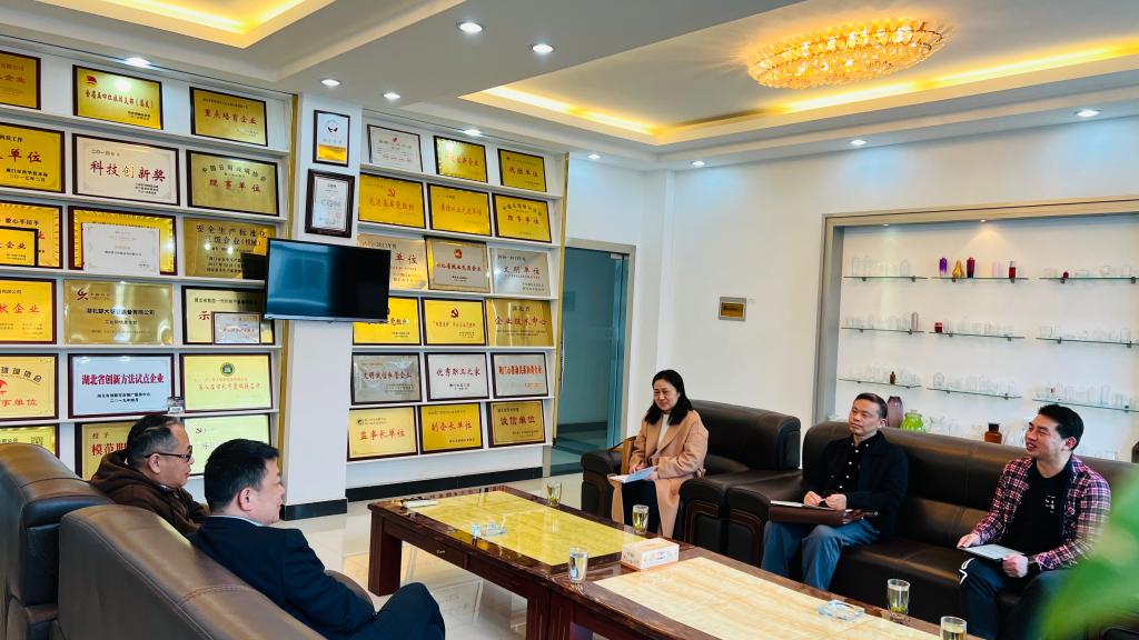 公司经理刘诺亚率科研工作负责人刘娜,商务英语专业负责人张关俊和黄音频,一行四人来到掇刀高新区走访企业,为毕业生谋求高质量就业岗位,探讨院企合作。
