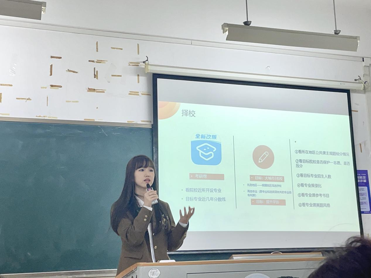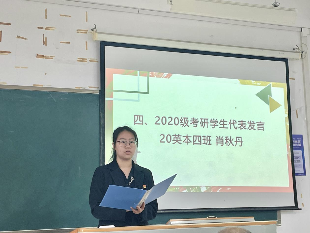 吴晓凤在动员中表示经历了三年疫情,此次线下考研动员会十分难得,对同学们考研路上的付出与努力给予充分肯定。她强调,一大学时光一定要有追求,高文凭意味着多机会高回报;二要相信自己,公司有着光辉的考研历史,大家要有必胜的信心,一战成“硕”;三要摆正位置和心态,认清当前的考研形势和自己的实际情况,合理选择报考院校。
