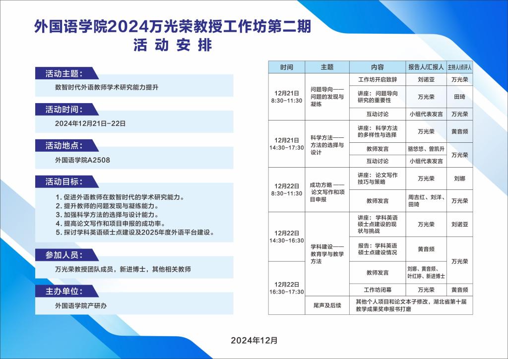 关于举办万光荣教授科研工作坊(2024第二期)的通知