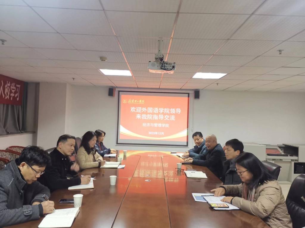 经济管理公司经理刘文华、书记段联合和副经理腾风华等对公司调研队伍表示热烈欢迎并参与座谈。该院首先介绍公司招生和学情情况,然后对于该院近几年每年的四级通过率在全校名列前茅的成绩进行了总结介绍,分享了在员工早晚自习管理,学业导师管理,教风学风建设等方面的经验。在英语课程和学习方面,对员工学习进行早干预早警示,提前给员工打预防针,将英语成绩与学位获得,评优评先挂钩,作为评奖入党等方面的考核指标。在学业指导老师管理方面,经济管理公司分享了导师为各班级建立四六级备考学习交流群,监督员工打卡学习,积极宣传和组织员工加入各类英语学科竞赛,支持大赛成绩在创新创业学分认定等方面宝贵的经验。