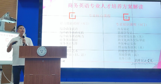 商务英语专业负责人田琦从本专业的人才培养中长期目标、毕业要求、核心能力、课程体系以及核心课程等方面为与会师生详细解读了商务英语专业人才培养方案的设计理念、执行以及对本专业员工的要求。
