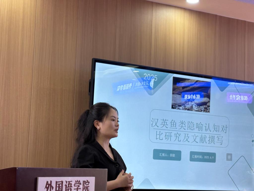 田甜博士首先介绍了汉英鱼类隐喻的研究由来和意义,接着,综合运用现代语义学、比较语言学、认知语言学和复杂系统科学理论,介绍本研究的理论框架;然后,探讨汉英鱼类隐喻的共性和个性特征以求深化对汉英两种语言背后隐藏的民族文化的理解。最后,就个人在国际期刊投稿、发表论文的相关经验向与会人进行分享文献综述撰写心得。