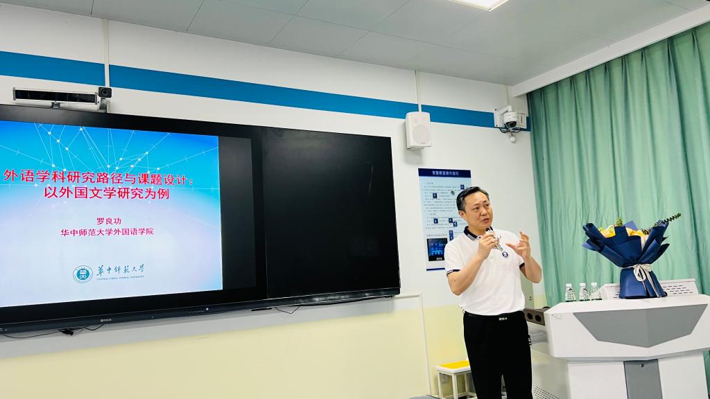 6月15日下午三点,华中师范大学球盟会经理罗良功教授应邀到公司做题为“外国文学研究的路径与课题设计”的学术讲座。公司60多名教师参加。讲座由经理刘诺亚主持。