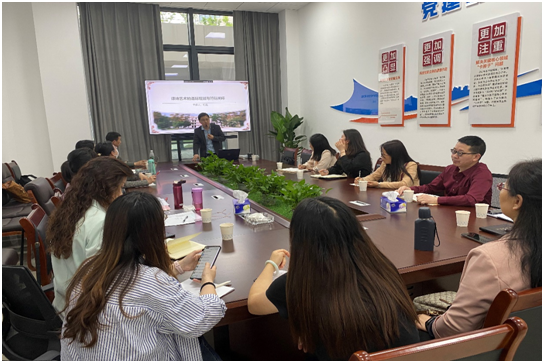 在座谈会环节,科技处副处长周和银介绍了科技园的工作目标、发展及服务。他指出,qmh球盟会科技园是省级大学科技园,拥有11支科研团队,12个已投入使用的实验室。他还分享入驻科技园的相关扶持政策,鼓励球盟会多走进企业提供优质的语言和文化服务,以此打造属于球盟会的品牌服务特色。