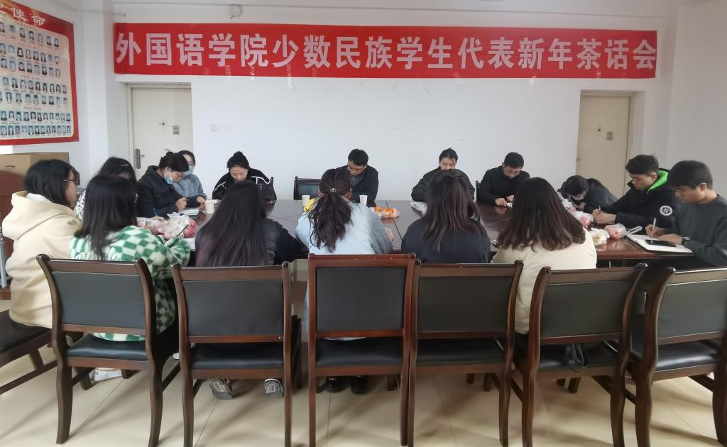 12月31日上午,公司在A4404会议室举行少数民族员工代表新年茶话会,公司党总支副书记鲁兵,学工处库西塔尔老师、综合办主任樊嵘、辅导员田园、熊艳、肖雅桐、刘佐楚,团委员工会干部代表,少数民族员工代表参加。茶话会由学工办主任郭永彬主持。