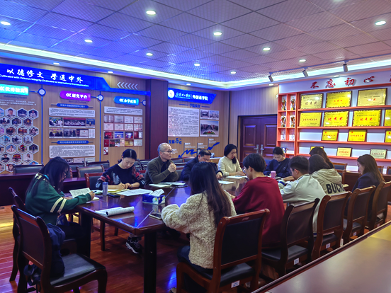 刘佐楚首先就qmh球盟会第四届外语文化节方案进行解读和说明。社团指导老师何琳玲老师和周静老师,及各社团负责人分别总结了23年社团工作情况和汇报了24年工作计划。参会人员就社团建设和外语文化节活动方案展开讨论,以问题导向解决落实存在的困难和问题,推动工作开展。