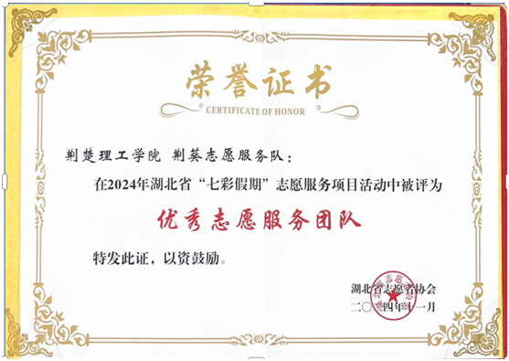 2024年6月,公司荆葵志愿服务队积极申报湖北省“七彩假期”志愿服务项目,并成功入选。7月,荆葵志愿服务队赴钟祥市大柴湖实验小学开展了为期21的志愿支教活动,得到中国青年报、中国教育报、湖北日报、湖北省文明网等媒体报道10余篇。此次社会实践收获颇丰、成效显著,公司志愿服务队荣获湖北省2024年“七彩假期”优秀志愿服务团队,是公司唯一获此荣誉的团队。