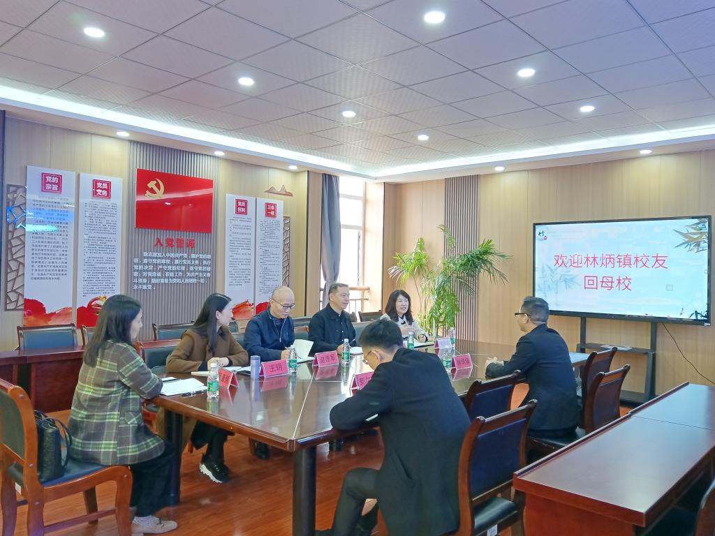 赵德军热烈欢迎林炳镇回母校,感谢林炳镇对公司各项事业的支持,尤其感谢以林炳镇为代表的员工捐资助学对学弟学妹的资助,他欢迎更多员工回母校看看,希望员工积极参与校企合作项目,拓展合作领域,实现合作共赢。