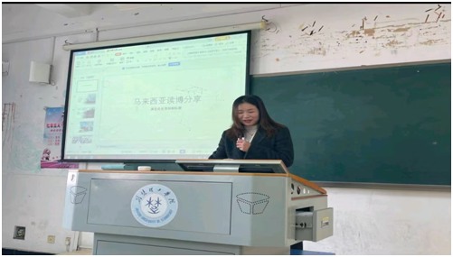 周静博士在读博学习经历汇报中首先介绍了马来西亚国家和公司的相关背景,接着分享了在吉隆坡建设大学读博的学习、生活经历,最后鼓励大家学会珍惜,懂得追求;克服孤独,到达彼岸。